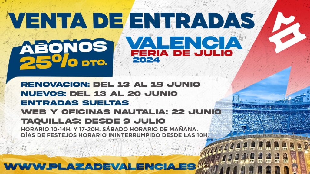 La Plaza de Toros de Valencia celebrará en un mes la gran Feria de Julio, el segundo de los abonos que acoge el coso de la calle de Xàtiva.